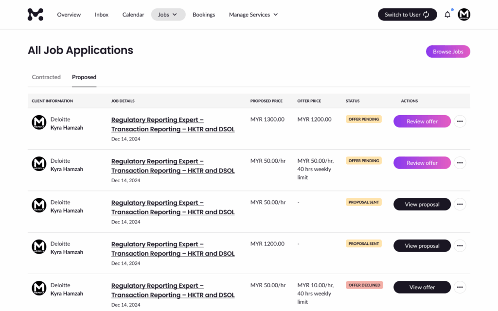- Click the “Proposed” tab to view jobs you’ve applied for.