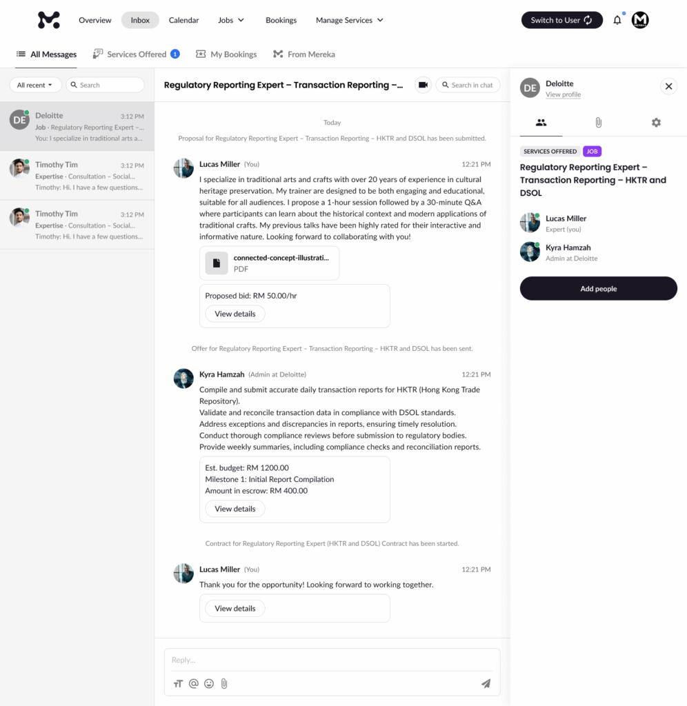 - You’ll see a confirmation message in your Inbox chat with the client, showing that the contract has started and your note has been sent.