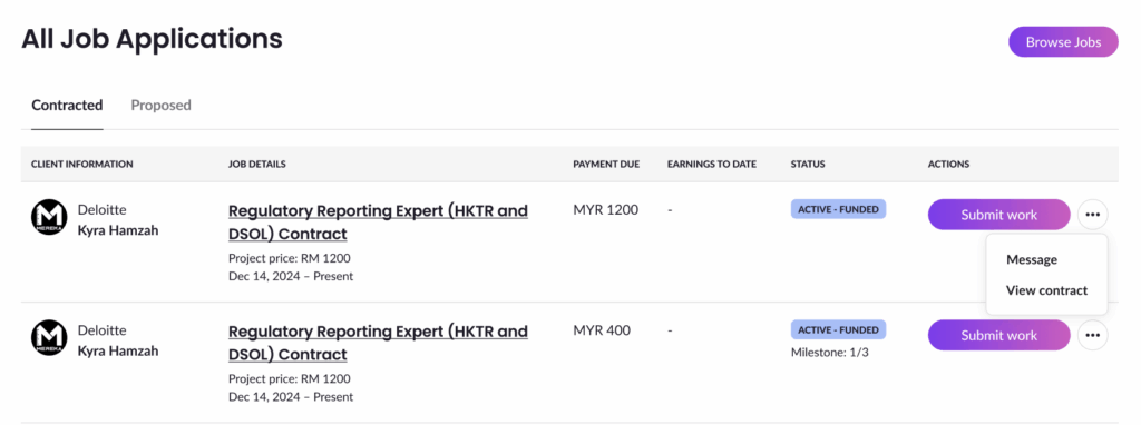 • The Contracted tab on your Job Application Listing page